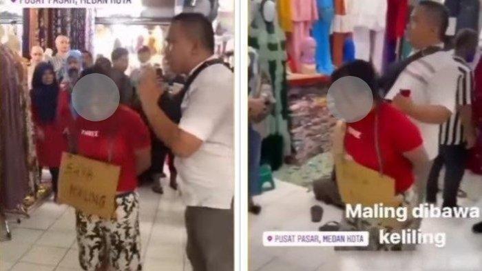 Viral di media sosial video yang memperlihatkan seorang wanita diduga pelaku pencurian diarak keliling pasar.