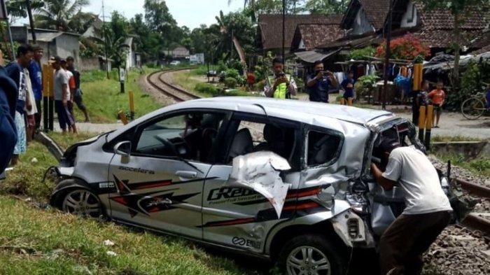 Kecelakaan itu diduga terjadi karena pengemudi mobil, Gito (49), melamun saat melewati perlintasan.