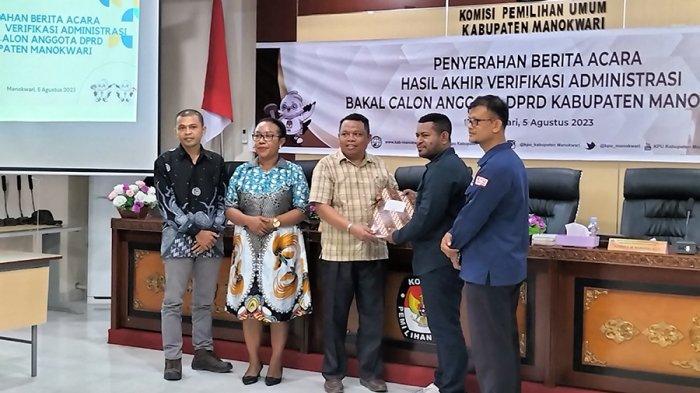 TRIBUNPAPUABARAT.COM, MANOKWARI - Komisi Pemilihan Umum (KPU) Kabupaten Manokwari, menyerahkan berita acara hasil akhir verifikasi administrasi bakal calon anggota DPRD Manokwari kepada perwakilan partai politik peserta Pemilu 2024.