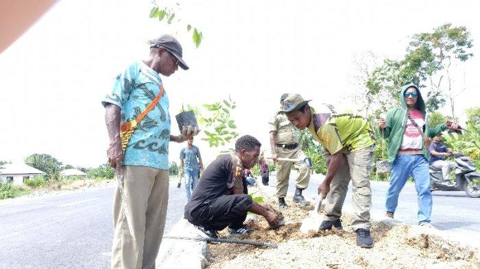 TRIBUNPAPUABARAT.COM, MANSEL - Dalam rangka merayakan HUT ke-74, Satuan Polisi Pamong Praja (Satpol PP) Manokwari Selatan (Mansel) melaksanakan penanaman 150 bibit pohon mahoni, di ruas jalan menuju area Kantor Bupati baru, di Distrik Ransiki, Jumat (1/3/2024).