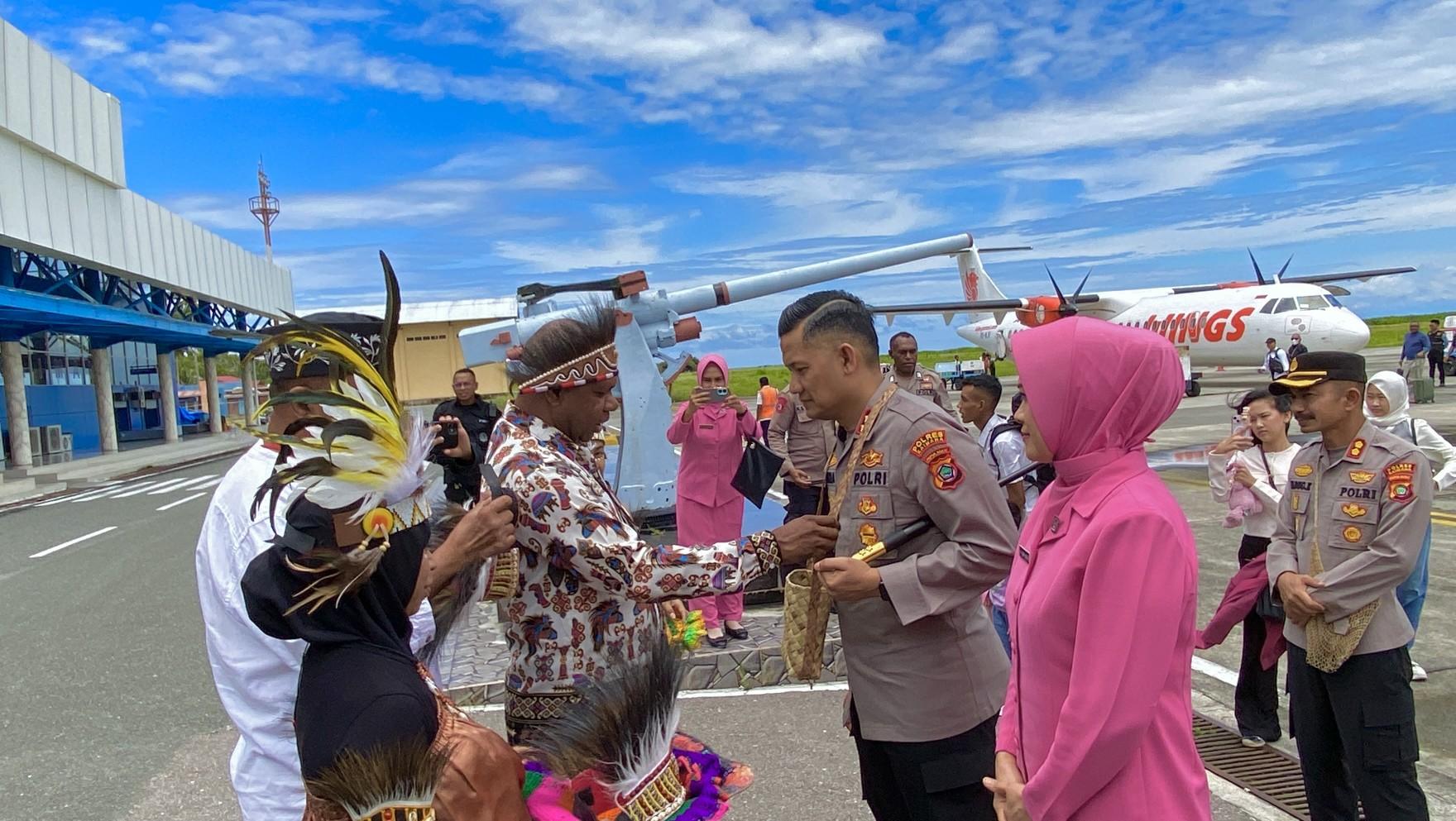 Tiba di Kaimana AKBP Satria Dwi Darma Disambut Prosesi Adat