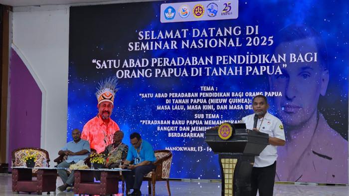 Pernyataan itu disampaikan saat ia menjadi pemateri dalam seminar nasional 'Menjelang Satu Abad Peradaban Pendidikan bagi Orang Papua di Tanah Papua" di Kampus Unipa, Selasa (14/10/2025).